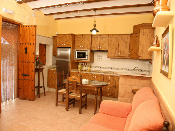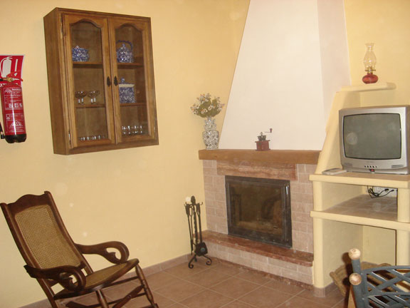 Salón comedor con chimenea de leña, aire acondicionado con bomba de calor y frio, tv, juegos de mesa y cristalería.